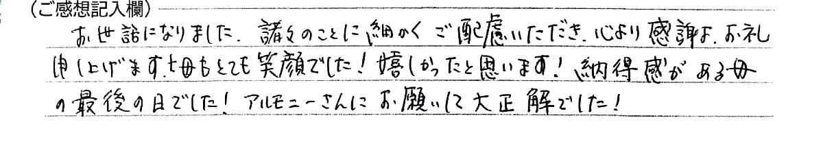 - O様 この度はお母様のお葬儀お世話様でございました。